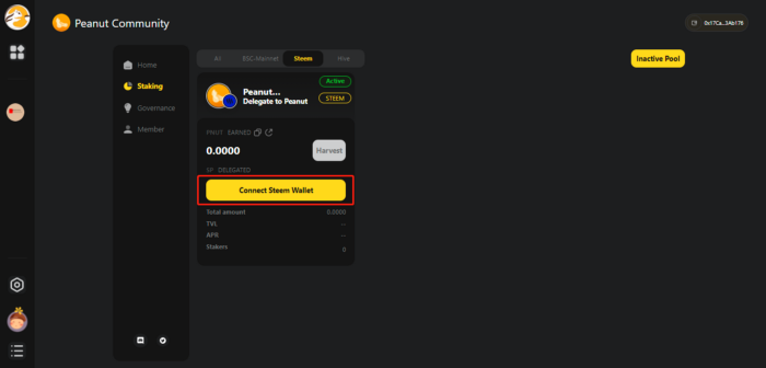 2. Click【Staking】-【Steem】, Click【Connect Metamask】, connect Binance Smart Chain Network.